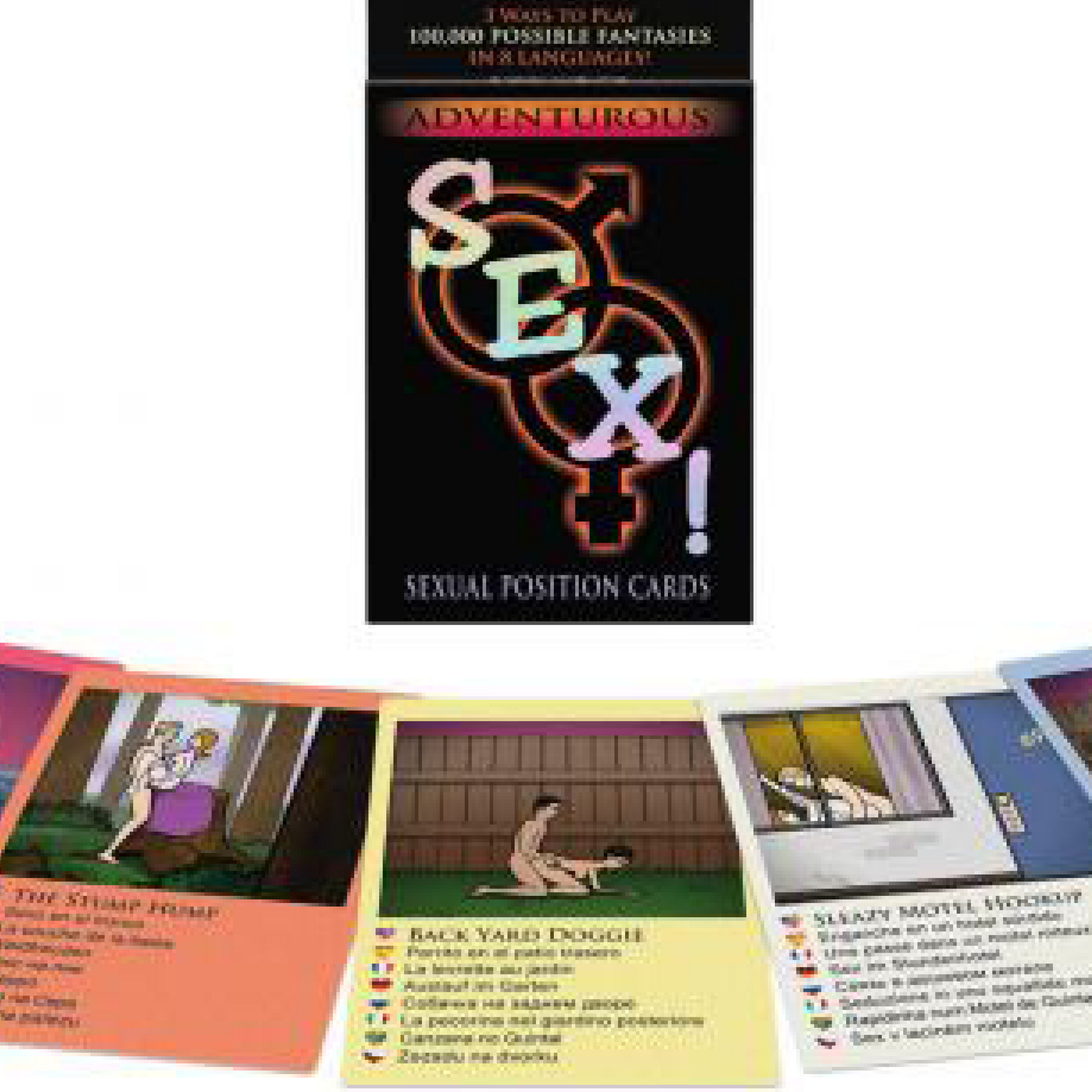 Each Adventurous SEX! card explicitly illustrates a provocative SEX! position. Some are outdoors, others are in unique locations, and all are completely adventurous. Use as flash cards or play one of the three Adventurous SEX! card games to plan out one of the 100,000 possible sexual fantasies. After building a fantasy, you then act it out together! \n \nGame Includes: 50 cards and game rules.