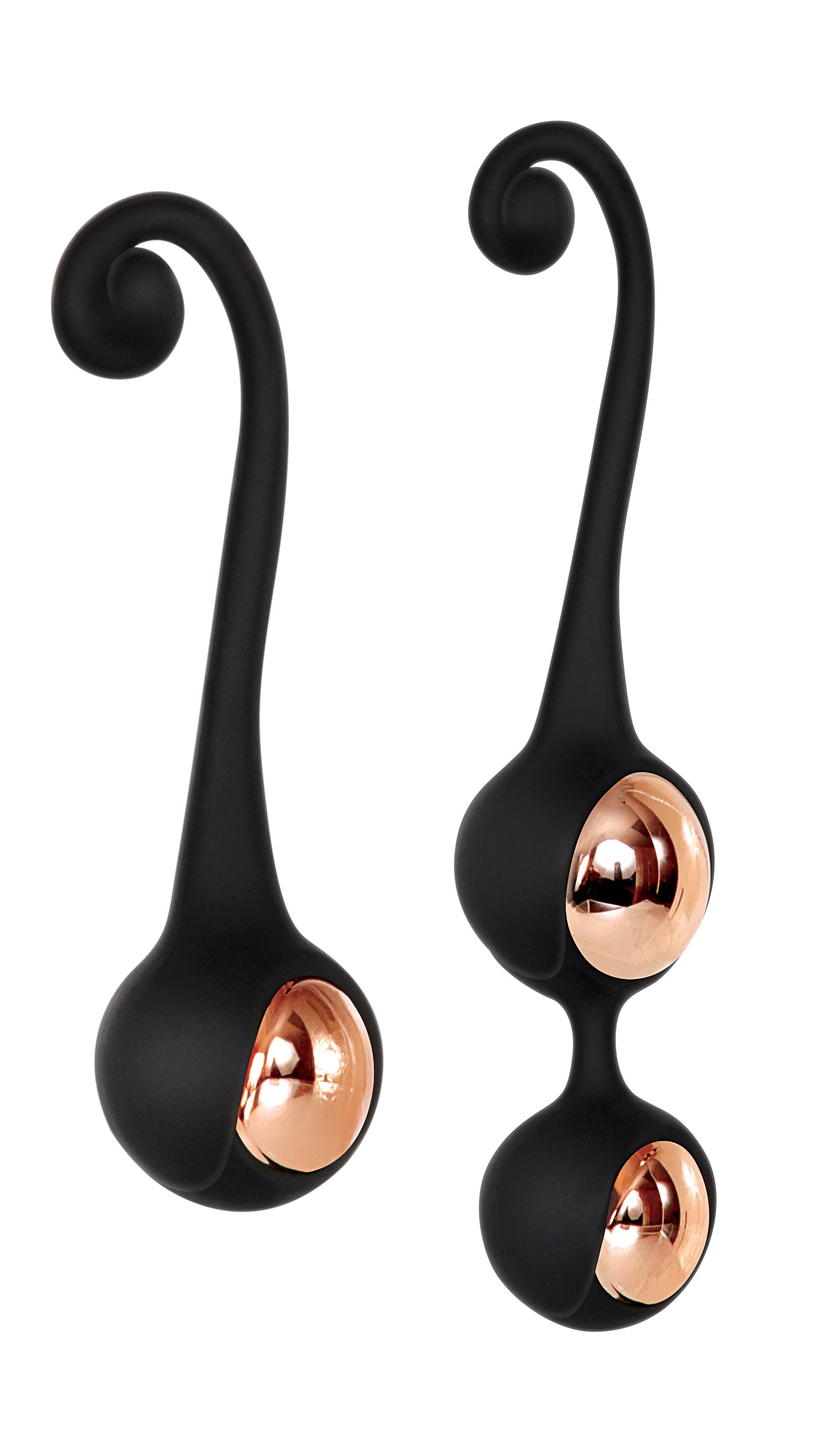 Enjoy more intense intimate pleasure and stronger orgasms with this luxurious kegel training kit. Simply slip one or two balls inside and squeeze your muscles around them to strengthen, tighten, and tone. As you move you'll feel weights inside each ball roll, giving you an intense natural massage. Wear under clothes as your sexy secret, or during a spanking for extra-naughty fun. Two silky silicone sleeves and three interchangeable sizes and weights let you experiment with every level of excitement. Gorgeous rose gold finishes and curvy retrieval hooks add elegant style. Clean your kegel balls easily with Adam & Eve Toy Cleaner and a warm water rinse.