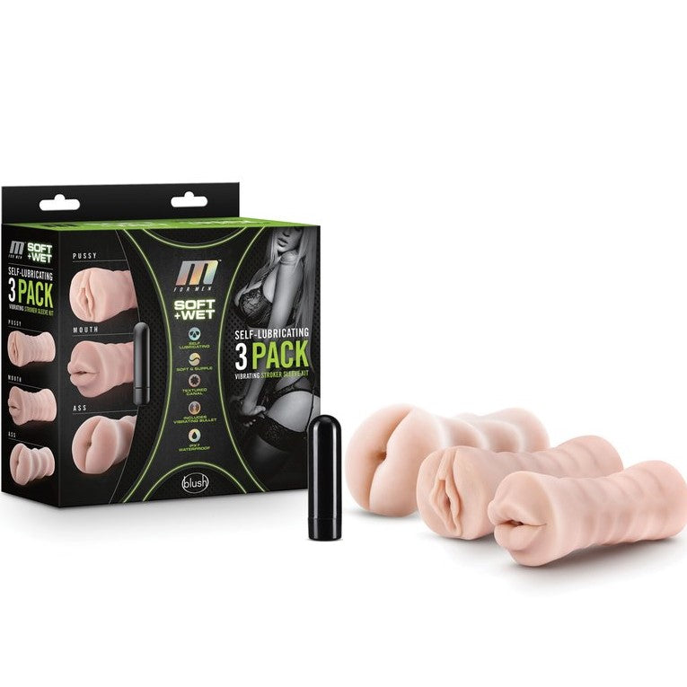 M for Men 3-Pack Self-Lubricating Vibrating Stroker Sleeve Kit
