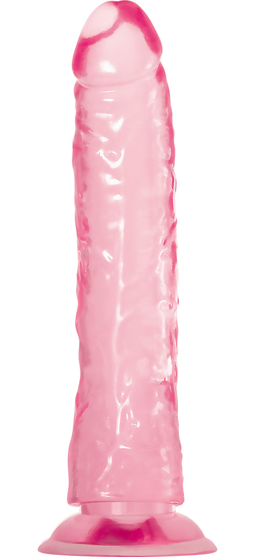Savor the experience of this supple jelly dildo with its realistic phallic shape, life-like tip and stimulating textures. The powerful suction cup base attaches to any hard, flat surface for delightful hands-free play. The flexible TPR shaft moves with your body - it's firm, yet pliable with a soft "give" to it that feels sooo right!